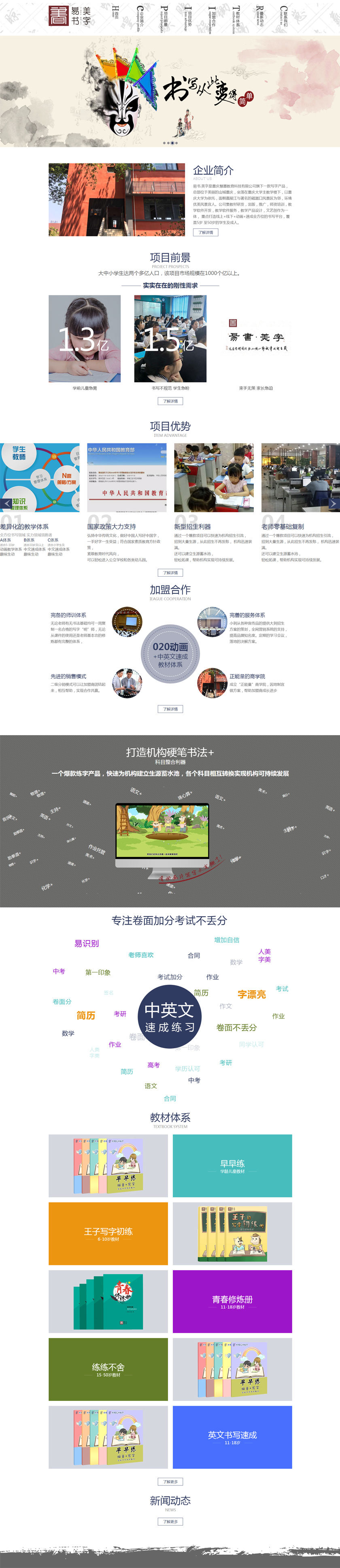 Project Description 易书.美字练字是重庆慧墨教育科技有限公司旗下一款写字产品,总部位于美丽的山城重庆,坐落 在重庆大学主教学楼下,以重庆大学为依托,面朝嘉陵江与著名的磁器口风景区为邻,环境优美 风景宜人。公司集教材研发,出版,推广,师资培训,教学软件开发,教学软件服务,教学产品 设计,文艺创作为一体,重点打造线上+线下+动画+速成全方位的书写平台,覆盖5岁至50岁的学 ... Official website address 可克达拉# I want to share