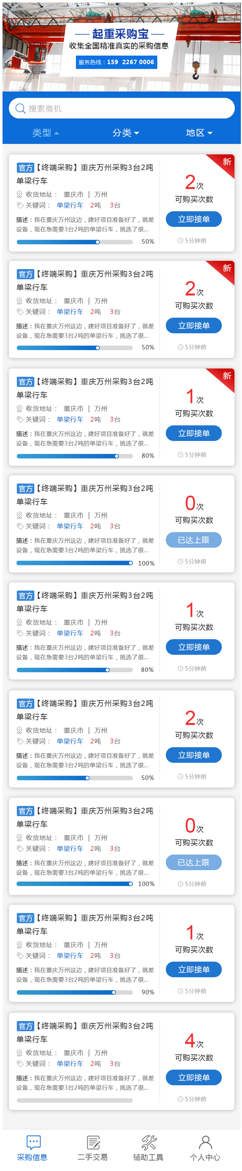Project Description 欢迎您关注起重采购宝,我们每天为您实时推送全国各地真实有效的起重设备采购信息,让您直接面对终端采购客户,起重采购宝助您生意更上一层楼! Official website address 可克达拉# I want to share