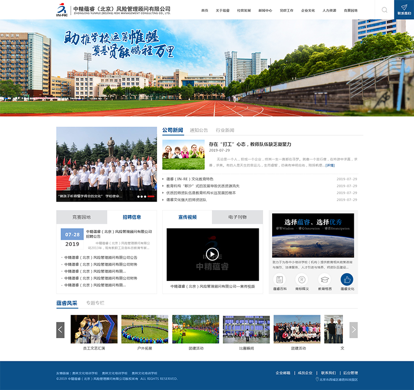 Project Description 中精蕴睿(北京)风险管理顾问有限公司2013年,现有教职工及各科目教育专家80多人,致力于为各中小培训学校(机构) 提供教育相关政策咨询与指引、法律服务、人才引进与培养、师资队伍建设与培训、教学教研与学科创新、市场营销企划、文化 理念塑造与品牌输出的专业化教育管理全方位的综合服务。 Official website address 可克达拉http://in-re.com/ I want to share